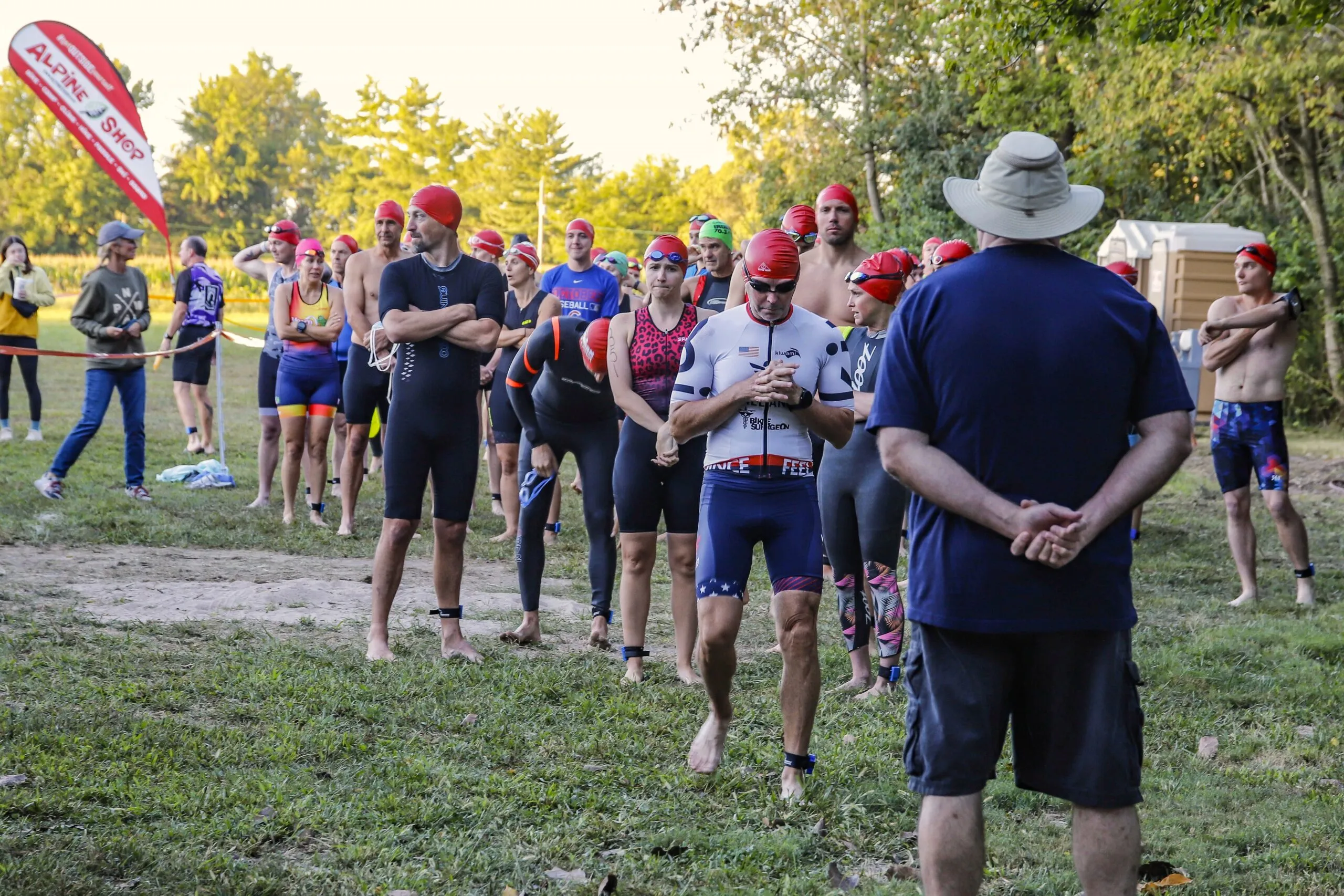 The race begins Saturday morning at 7am. You will run down the beach into our 2-acre lake for an open-water swim (OWS) with a guide lane. You then ride and run through the picturesque rural Millstadt countryside, finishing back on the farm through the race arch. The course is largely flat with a few hills.